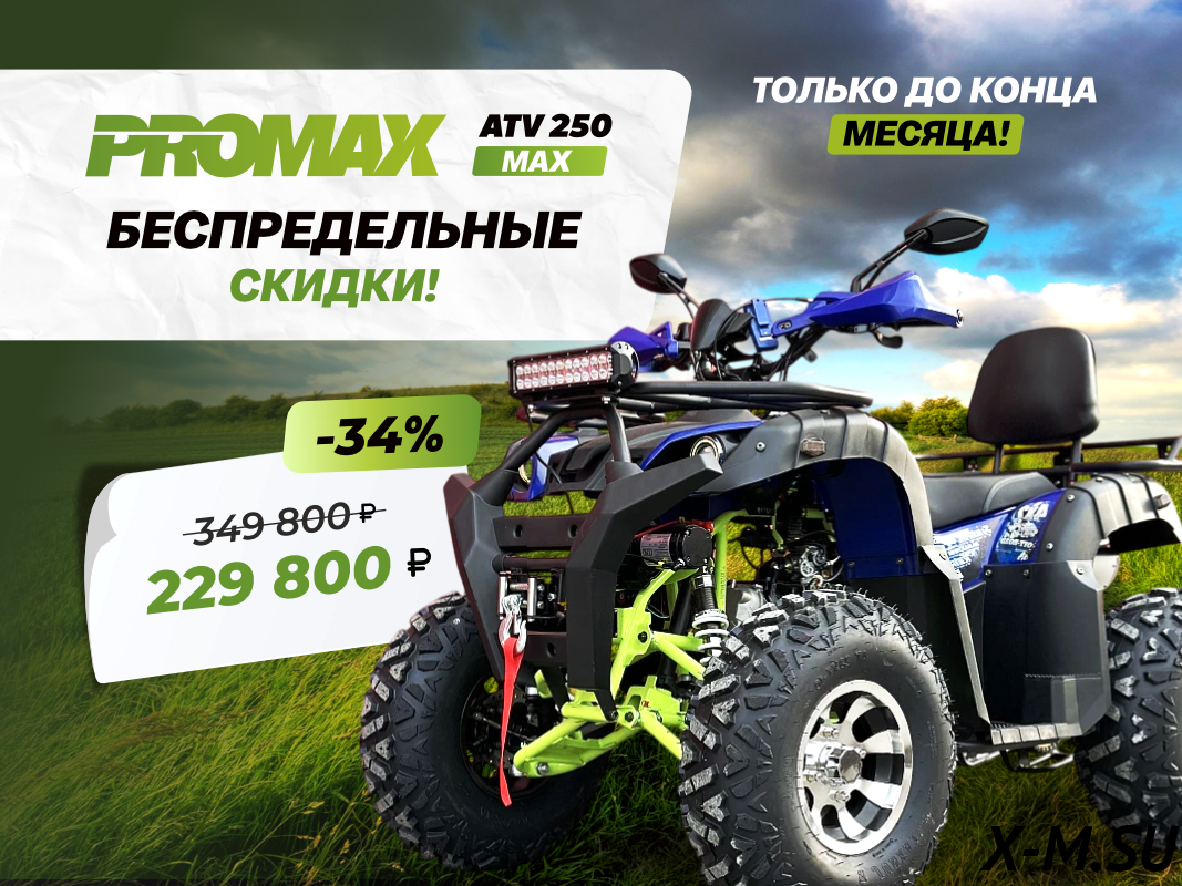 Норм аппарат. PROMAX ATV 250 MAX – отличный вариант за свои деньги. Легко управляется, динамичный. Понравилась лёгкая рама, не чувствуется тяжести. Есть всё необходимое: лебёдка, подогрев ручек, доп. свет – всё работает. Только вот инструкция к нему немного кривоватая, пришлось разобраться самому. В целом, доволен покупкой.