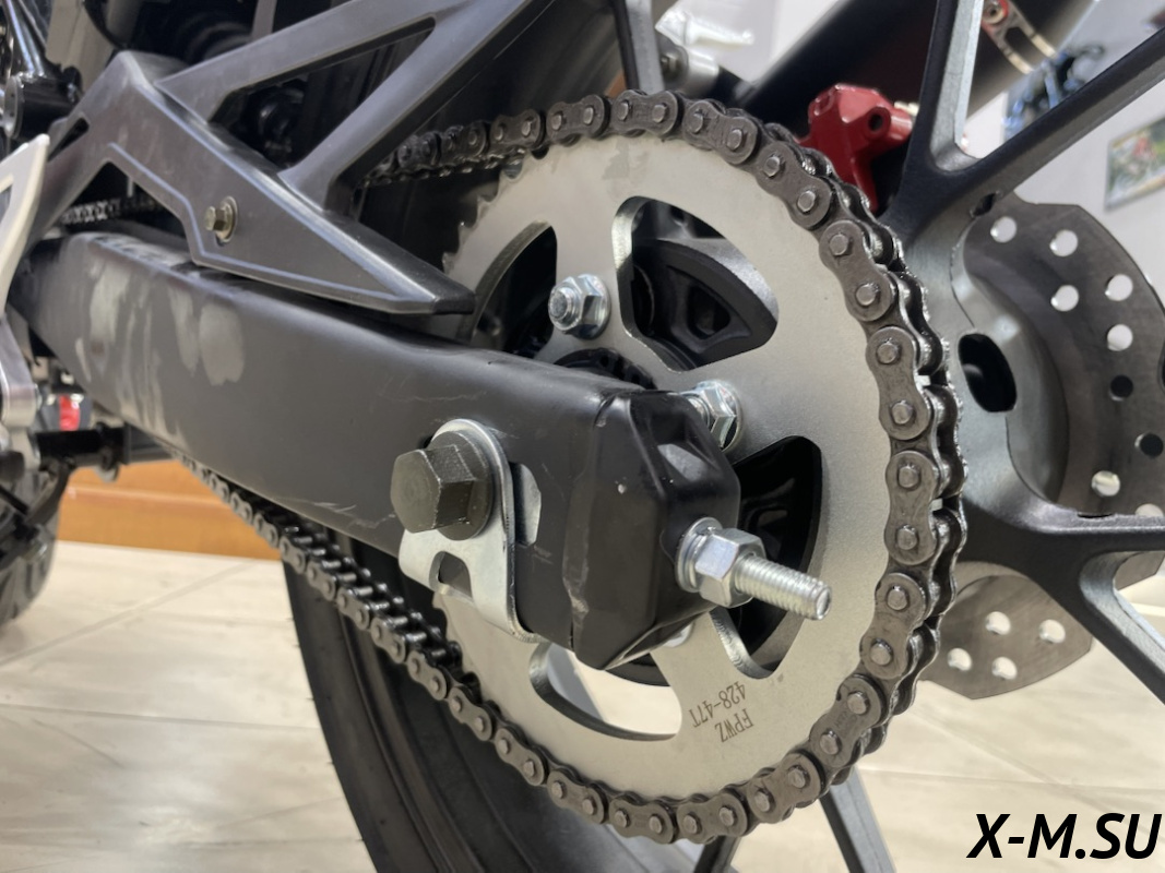 Пластик используется очень прочный и распространенный, что делает его максимально возможным к обслуживанию. Лапка тормоза так же фрезерованная, алюминиевая. Самая легкая и прочная приводная цепь уже установлена!