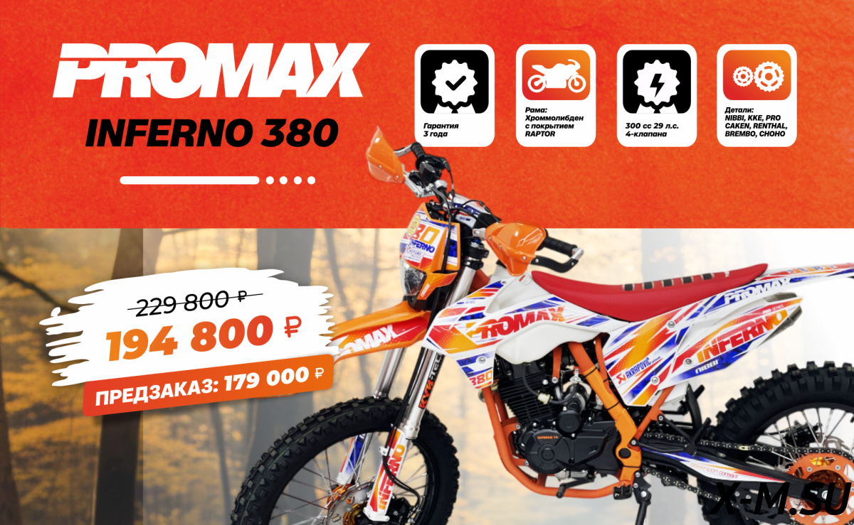 Кроссовый мотоцикл PROMAX INFERNO 380: когда мощь, надежность и цена сходятся в одной точке. Идеальные 300 куб. см до 250 000 рублей