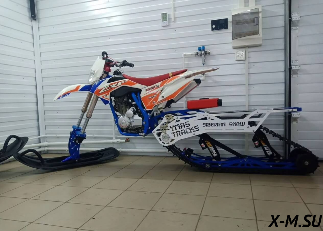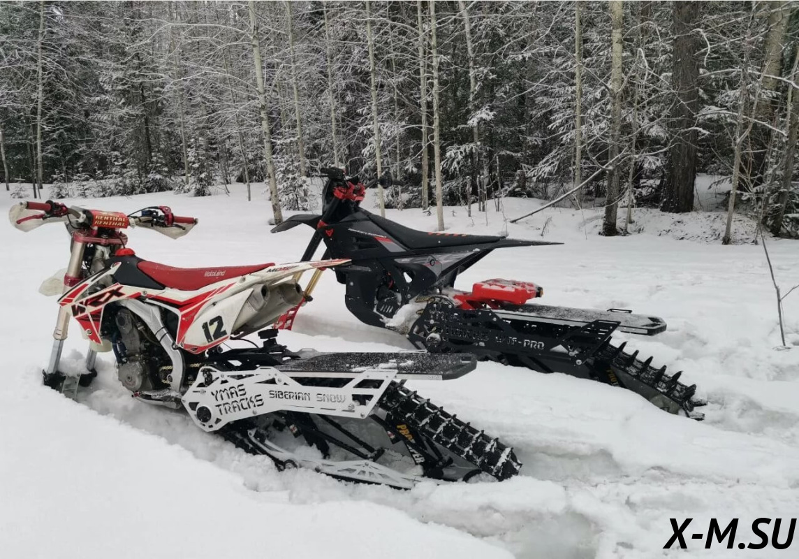 SiberianSnow от YmasTracks — универсальный гусеничный комплект для внедорожных мотоциклов. Гусеничный мотоцикл (СНОУБАЙК) это, по сути, одноколейный снегоход. Вы получаете возможность продлить мото сезон и эксплуатировать мотоцикл не только летом но и зимой.